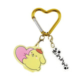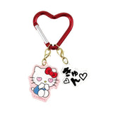 サンリオキャラクターデザインの1リングにチャームが2つセットになったアクリルキーホルダー。サンリオキャラとオノマトペのセットで、どちらのチャームもすきぴを見た時の胸の高鳴りを表現したデザイン。チャームはハートのカラビナで接続、個別に取り付け・取り外しも可能。推しのアクキーを一緒につけて自分の気持ちを表現できます。